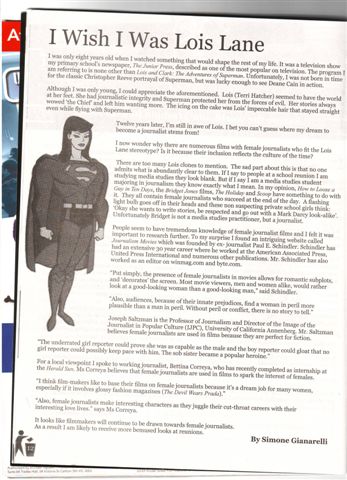 I Wish I Were Lois Lane by Simone Gianarelli, a Trobe University Media studies student who wrote this article about female journalists in movies.